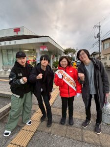 宍道駅前には男子高校生3人組が来てくれ、趣味や好きな教科、将来の話などをしました。未来を担う若者のためにも頑張ります。(撮影掲載許可をいただいております。)